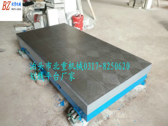 T型槽劃線平臺(tái)材質(zhì):高強(qiáng)度鑄鐵HT200-300工作面硬度為HB170-240,經(jīng)過(guò)兩次人工處理(人工退火600度-700度和自然時(shí)效2-3年)使用該產(chǎn)品的精度穩(wěn)定,耐磨性能好。