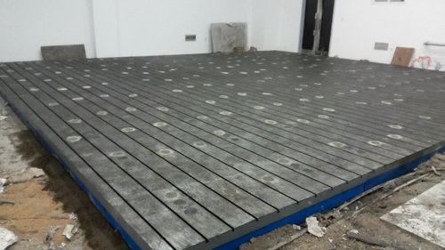 為沈陽客戶生產的設備運行試驗平臺,T型槽平臺,有2000*4000mmT型槽平臺拼接組成.采用頂絲和地腳螺栓的調整固定方式.